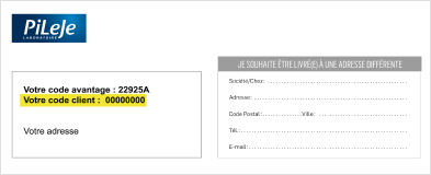 Votre code client PiLeJe se trouve sur l’entête de vos factures PiLeJe ou sur les bons de commande que vous recevez par courrier.